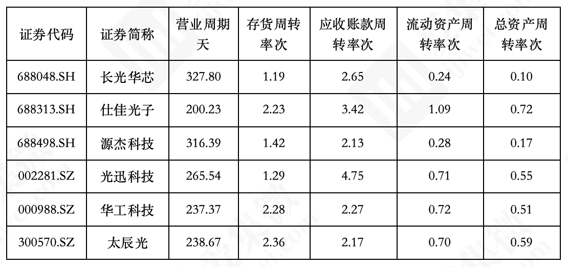 整体来看,六家企业运营效率指标的分化,本质是 “产业链环节 + 业务模式” 的必然结果:仕佳光子、太辰光等无源器件企业凭借轻资产模式实现 “高周转、短周期”;光迅科技、华工科技等光模块龙头依托客户与供应链优势保持稳健效率;长光华芯、源杰科技等光芯片企业则受限于成长阶段与业务属性,短期效率滞后。这一格局全面反映光通信行业 “中游高效、上游承压” 的运营特点,以及不同环节企业在资产管控与资金使用上的差异化能力。