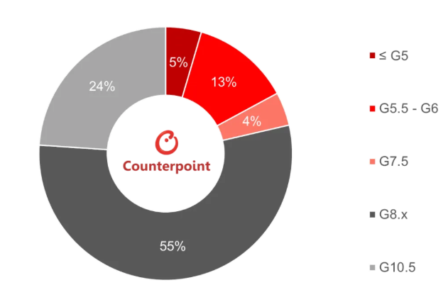 从世代线尺寸划分来看,目前全球四座最大的第10.5世代线工厂均位于中国大陆 。这些工厂合计贡献了全球25%的市场份额,主要服务于超大尺寸 LCD 电视面板生产。