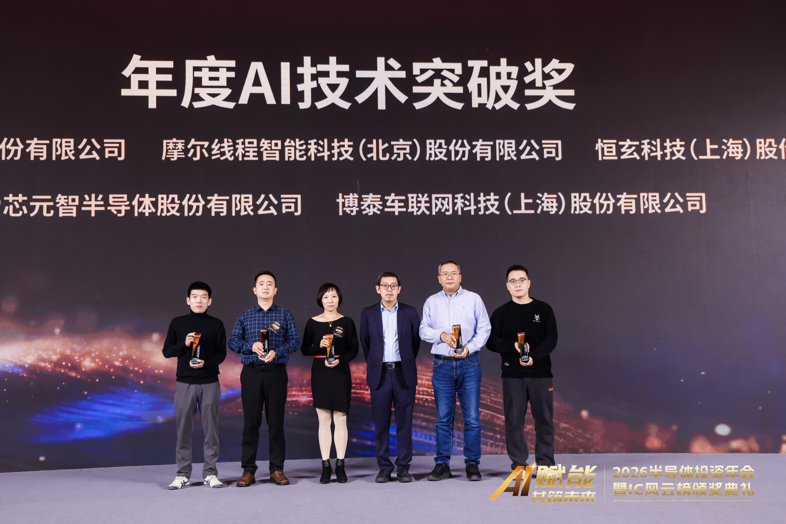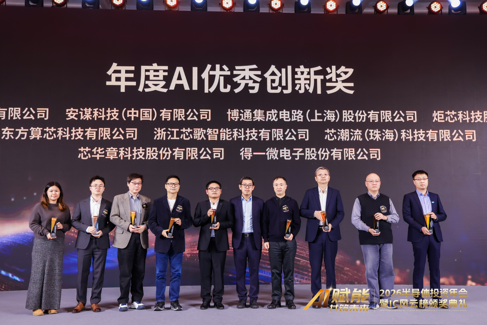 目前,2026年IC风云榜正式揭晓,重磅颁发“年度具身智能技术突破奖”“年度AI技术突破奖”“年度AI优秀创新奖”“年度AI赋能企业先锋奖”“年度车规芯片技术突破奖”“年度车规芯片市场突破奖”“年度智能汽车产业链最受机构关注奖”七大奖项。该系列奖项旨在表彰在具身智能、人工智能与智能汽车等前沿领域中,围绕核心技术突破、产品创新落地、市场规模化应用及产业生态建设等方面表现卓越、具有行业引领力和示范价值的企业与创新成果,集中展现中国集成电路产业在新一轮技术变革与产业升级中的创新活力与发展高度。