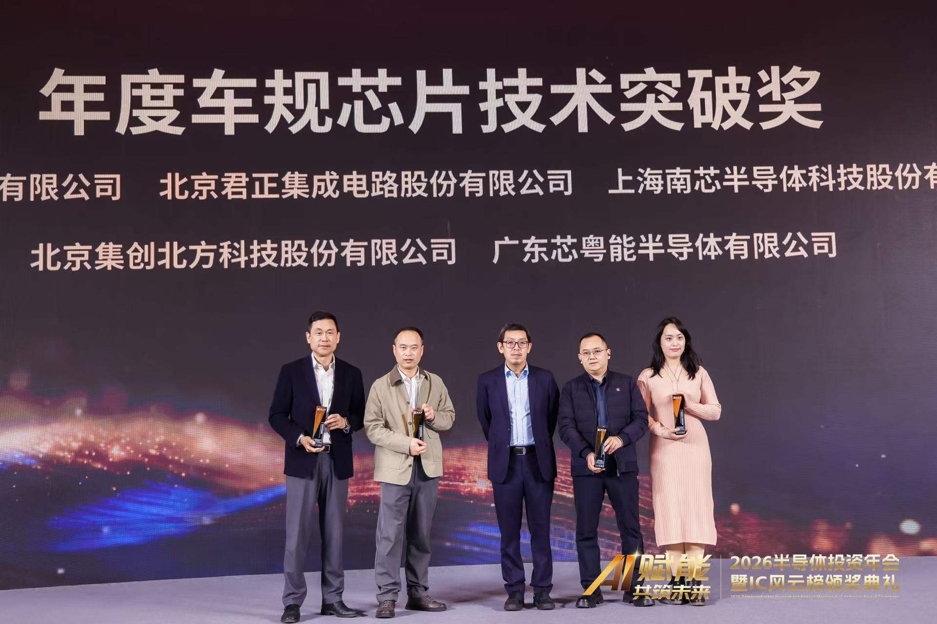 “年度车规芯片市场突破奖”旨在表彰2025年度实现单款车规芯片产品高销售收入或销量收入突出性高增长,在细分领域市场占有率处于领先地位,产品应用市场广泛的企业。