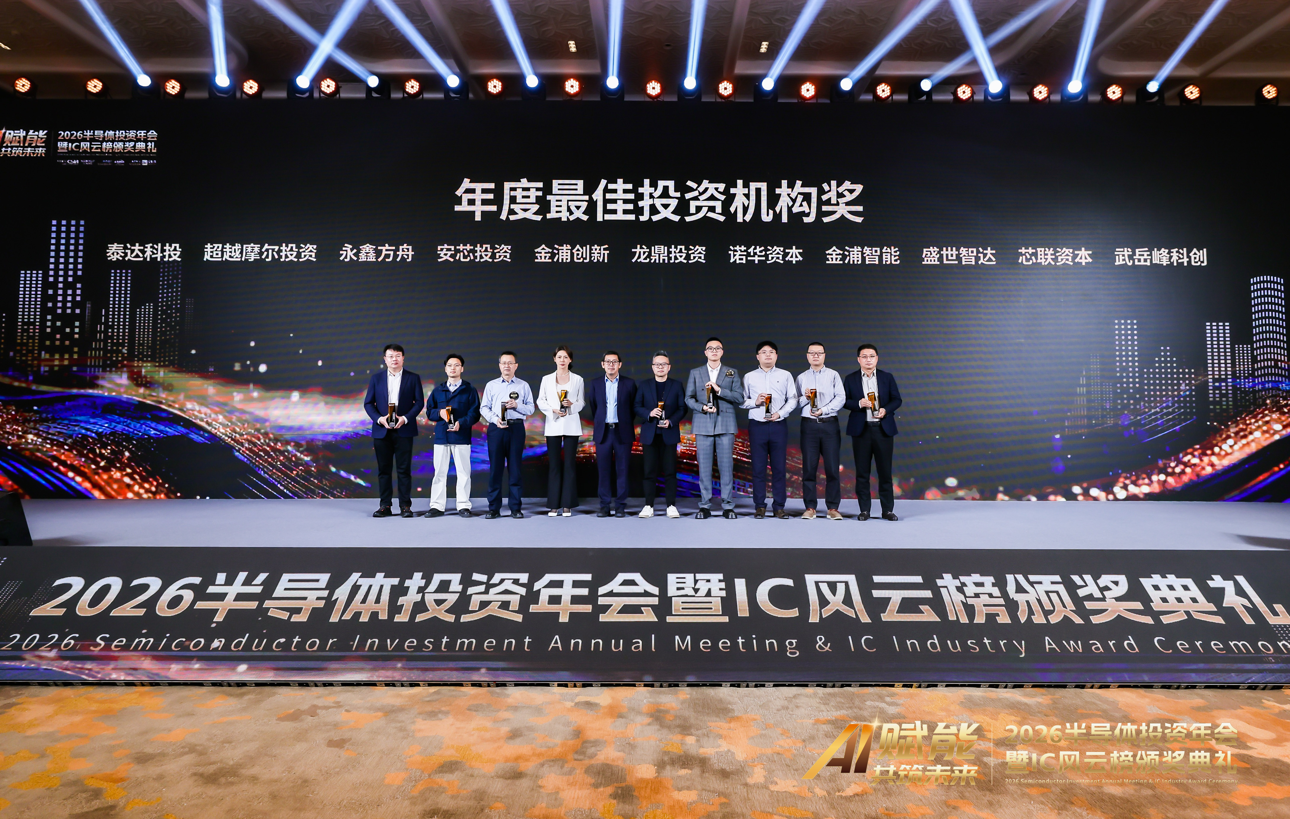 2025年12月20日,由半导体投资联盟和集成电路投资创新联盟主办、ICT知识产权发展联盟协办、爱集微承办的“2026半导体投资年会暨IC风云榜颁奖典礼”在上海隆重举行。福建省安芯投资管理有限责任公司(以下简称:安芯投资凭借在半导体产业投资领域的系统性布局与卓越产业赋能成果,一举斩获年度最佳投资机构奖、年度最佳产业投资机构奖及年度最佳投资人奖三项重磅荣誉,成为本届IC风云榜最受瞩目的产业资本代表之一。