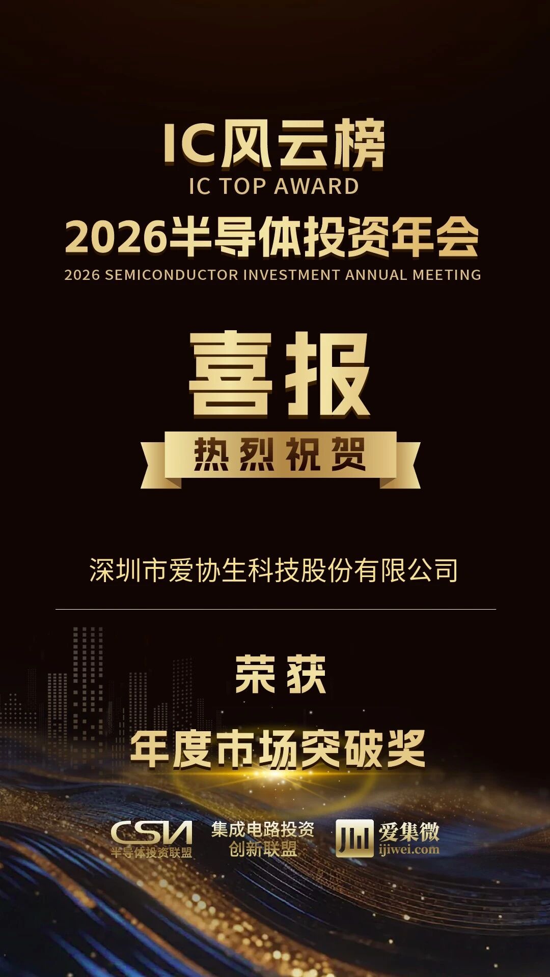 深圳市爱协生科技股份有限公司(以下简称:爱协生科技)荣获2026年IC风云榜“年度市场突破奖”。