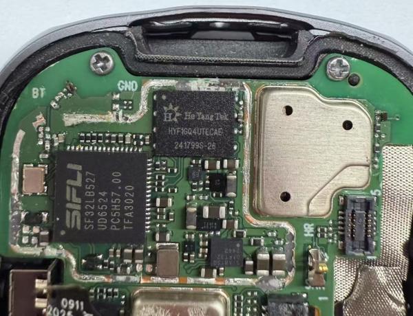 打开铝盖保护层后,可清晰看到两颗核心芯片:分别为思澈科技SF32LB52X系列主控芯片与扬贺扬HYF1GQ4UTECAE存储芯片。其中,扬贺扬HYF1GQ4UTECAE存储芯片的性能参数直接影响手表的运行流畅度与数据安全性,其核心参数如下: