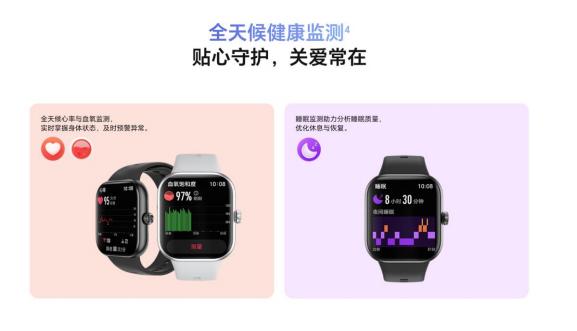 •健康监测,全方位守护身心健康 支持一键体检,同步采集心率、血氧、压力、睡眠及心脏健康等关键数据,自动生成健康报告;接入心脏健康研究计划,有效预警潜在心脏风险。(注:全天监测为间歇周期性监测,非实时;本产品非医疗器械,数据仅供健康管理参考,不作为诊断治疗依据。)