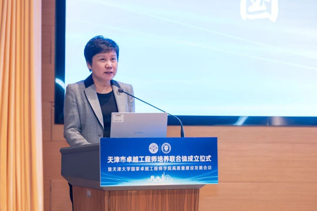 张玲在致辞中强调,卓越工程师是推动科技创新与产业升级的核心力量,联合体的成立是天津市贯彻落实国家教育科技人才一体化战略的关键举措,旨在充分发挥高校创新策源优势和企业技术创新主体作用,探索出一条具有天津特色、国内一流的卓越工程师自主培养之路,打造赋能天津产业焕新及支撑天津市高质量发展的新引擎。她表示,天津市委、市政府将全力支持联合体的建设与发展,在政策供给、资源投入、环境营造等方面提供坚实保障。
