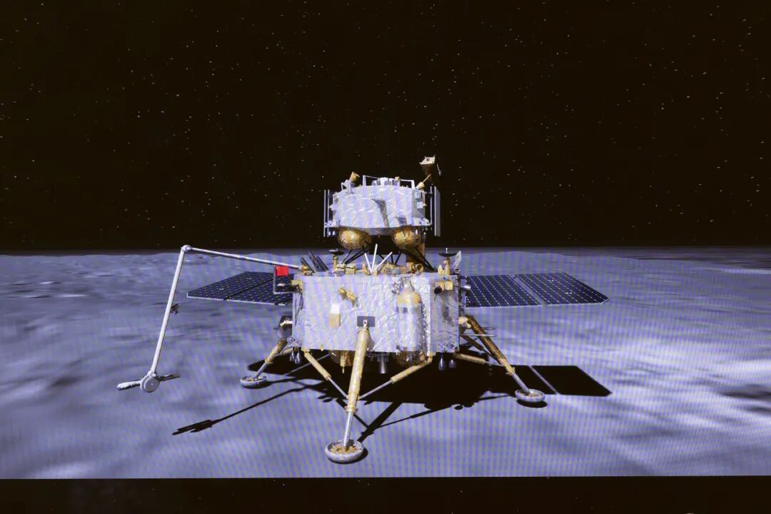 ▲嫦娥六号着陆器和上升器(动画模拟画面)。新华社记者 金立旺 摄