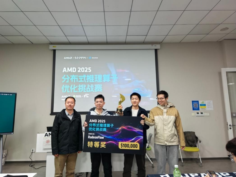 近日,AMD的上海交通大学开放日活动上进行了一项特殊的颁奖仪式:由上海交通大学计算机学院并行与分布式系统研究所(IPADS)王延葵、郝英屹两位同学组成的RadeonFlow团队在2025 AMD分布式推理算子优化全球挑战赛(AMD Developer Challenge: Distributed Inference)上,从超过600名参赛者中脱颖而出,荣获唯一的特等奖。