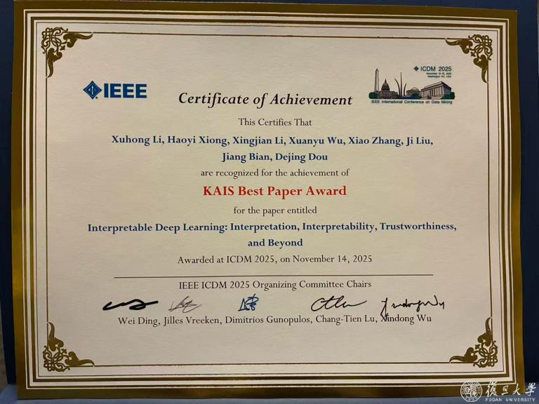 复旦大学:计算与智能创新学院窦德景教授团队荣获2025 KAIS最佳论文奖