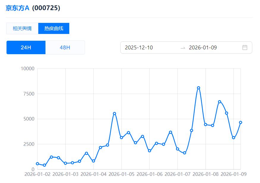 京东方A延续CES展会热度,今日继续蝉联热度榜首。寒武纪因股价持续上涨及巨额成交,关注度跃居第二。中微公司因股东及高管披露减持计划,市场讨论热烈,新晋榜单第三位。
