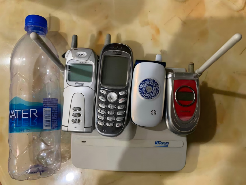 上图为UT(《狂飙》里的“大脸猫”)、中兴(青花瓷)、华为(A516)小灵通电话。底下是UT的小灵通基站,就WIFI那么大,到处都可以挂,不需要机房。