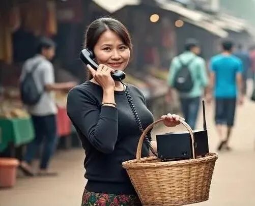 农村里有人手提着篮子将无线固定台和小天线、电池盒(power supply)、电话机装上,在赶集时自由接打电话,“农村大哥大”的名称由此而来。