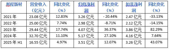基于此,多家证券机构看好彤程新材发展前景。上海证券指出,预计公司2025年-2027年分别实现收入35.92亿元、42.38亿元、51.87亿元,同比增速分别为9.85%、17.98%、22.38%;归母净利润分别5.60亿元、6.83亿元、8.83亿元,同比增速分别为8.34%、21.97%、29.37%。