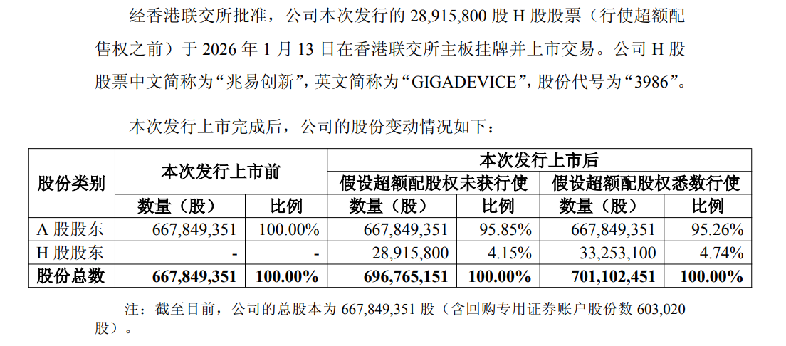 1月13日,兆易创新(股票代码:03986.HK;603986.SH)在香港交易所主板挂牌上市。这标志着已在A股扎根10年的存储龙头厂商,成功完成“A+H”双资本平台构建的关键一步,其资本平台与国际化战略迈入新阶段,成为本轮半导体行业IPO热潮中又一家实现赴港资本布局的核心企业。