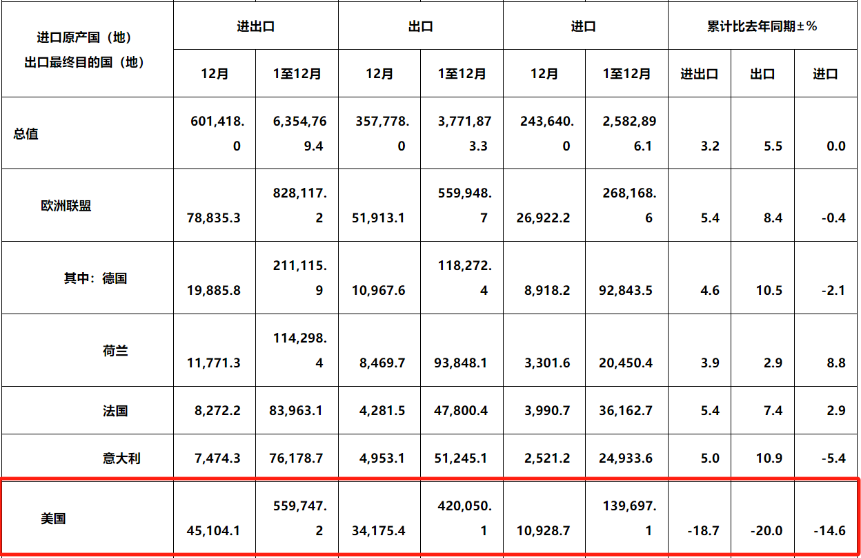 2025年中国对美国出口额同比减少20%,降至4200亿美元