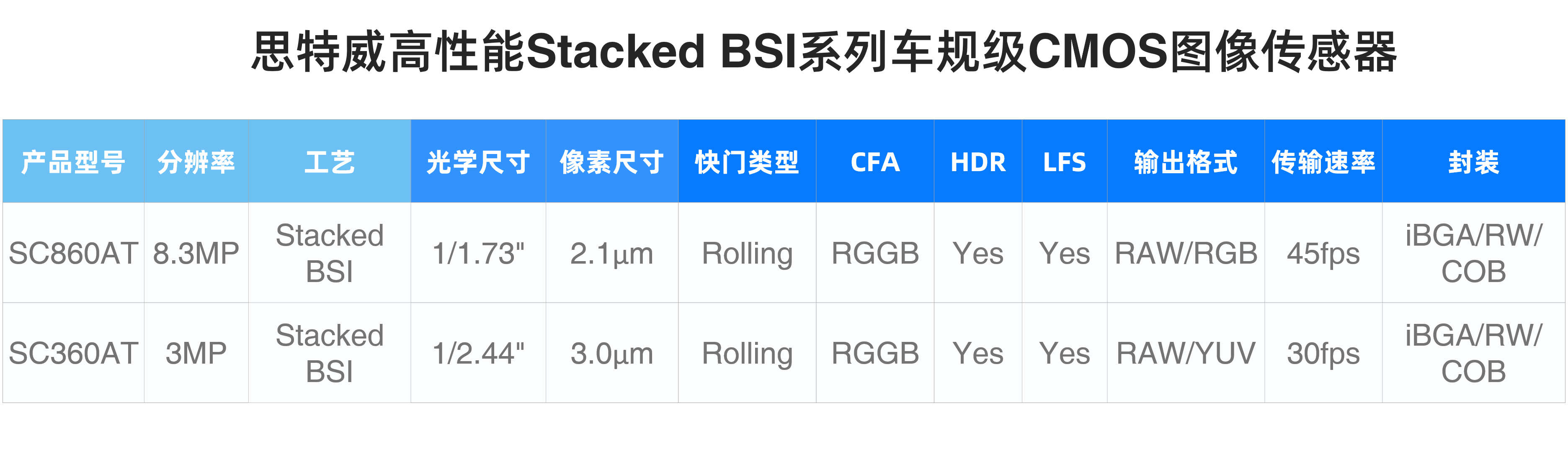 此外,SC860AT还支持RWCOB封装版本,能够为客户提供多样、灵活的产品配置选择,助力车载前视、侧视、后视及舱内OMS摄像头应用设计的加速升级。