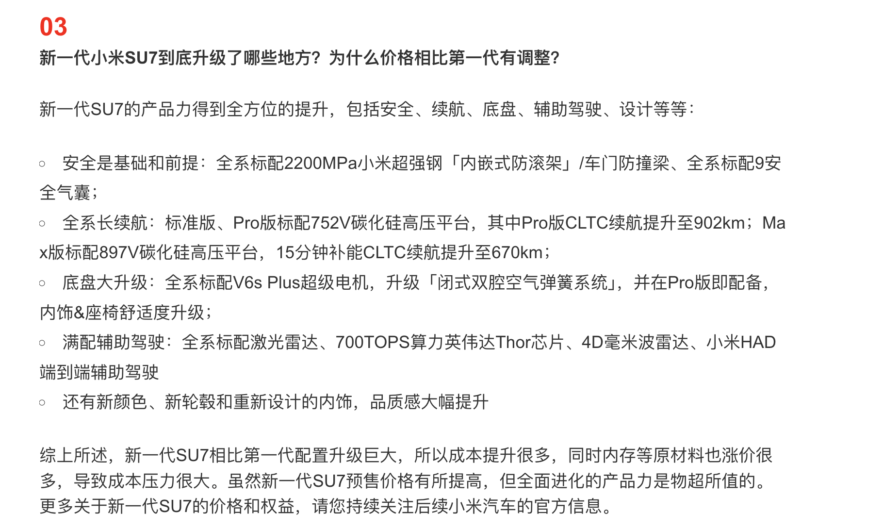 小米汽车回应提前3个月公布SU7改款消息:给用户预留更多时间比较、体验