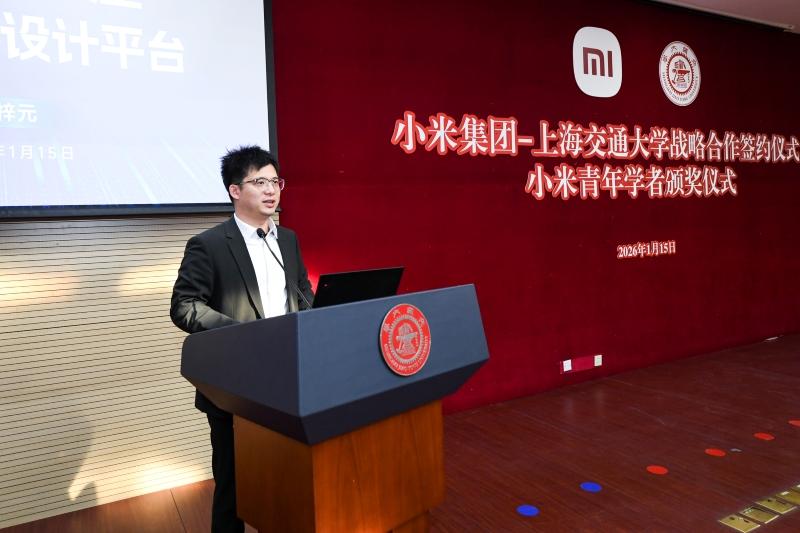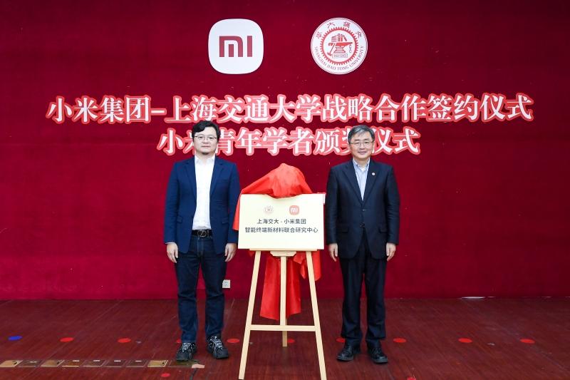 1月15日,上海交通大学与小米集团战略合作签约、小米青年学者颁奖仪式在上海交大闵行校区举行。小米集团副总裁、集团技术委员会主席屈恒,上海区域总部总经理、汽车部整车工程部总经理王振锁,产业标准研究部总经理、技术委员会秘书长周珏嘉,小米公益基金会执行秘书长刁美玲,上海交通大学校长、中国科学院院士丁奎岭,党委常委、副校长曾小勤,校长助理、人力资源处处长胡昊,先进产业技术研究院院长盛鑫军,发展联络处处长、教育发展基金会秘书长汪雨申,材料科学与工程学院党委书记孙丽珍出席活动。