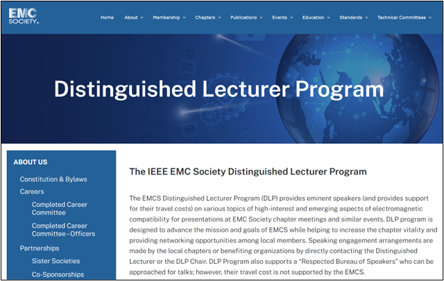 杰出讲师项目是IEEE EMC学会设立的最高学术演讲荣誉之一,旨在遴选在电磁兼容领域具有重要影响力、学术贡献突出并具有较好学术演讲能力的专家,为全球各地EMC分会提供高质量的专题学术报告,推动电磁兼容知识传播、技术交流与新研究方向的发展。杰出讲师由IEEE EMC学会理事会投票选定。入选者在两年任期内将接受全球各地EMC分会及相关组织的邀请,围绕热点与新兴主题进行特邀学术报告,并可主动与分会联系与对接,以支持IEEE EMC 学会的使命实施、提升分会活动参与度及促进会员间的交流与合作。
