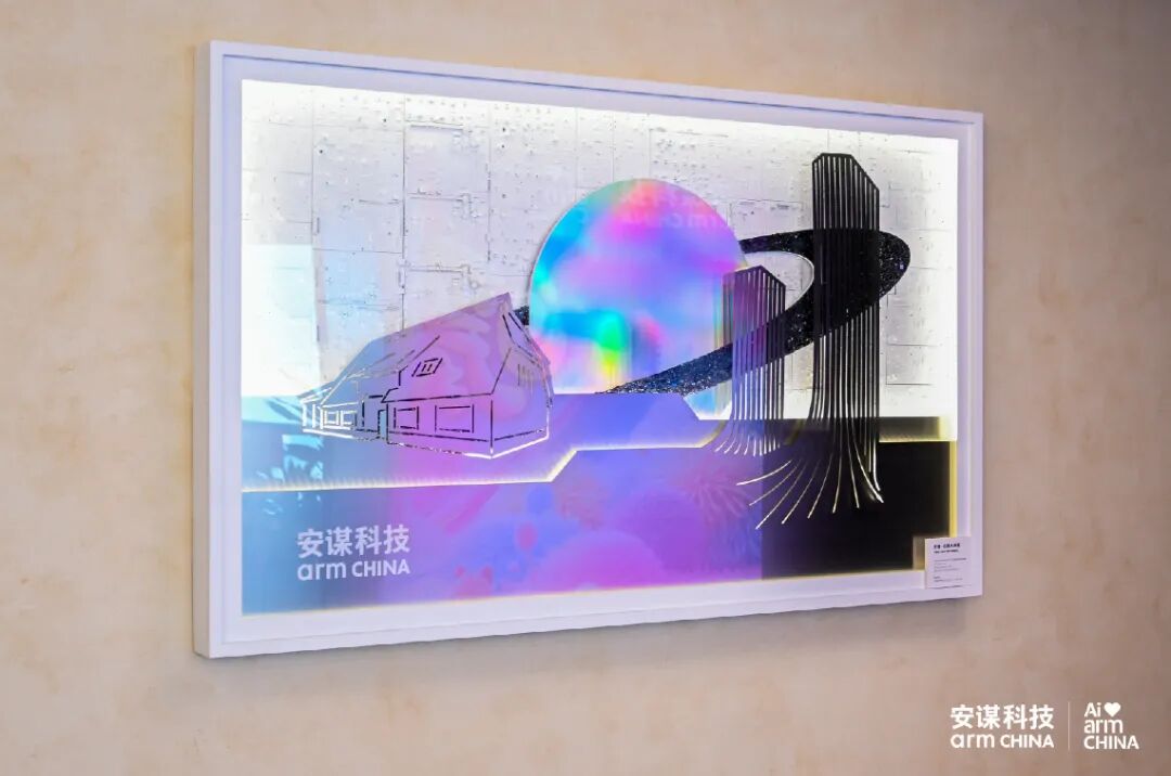 灯光映照下,作品流转着科技与愿景交融的光泽,无声传递着:安谋科技作为核心芯片IP提供者,期待携手产业伙伴共赴AI的“芯”辰大海。