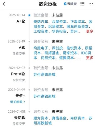 资料显示,新芯航途成立于2023年,聚焦集成电路芯片设计与自动驾驶技术研发。公司成立以来融资进展迅速,2024年完成天使轮、天使轮+及Pre-A轮融资,投资方包括顺为资本、真格基金等;2025年完成A轮融资,引入均胜电子、深创投、蔚来资本、IDG资本等机构;2026年1月又完成A+轮融资,股东阵容进一步扩展至奇瑞汽车等产业资本。
