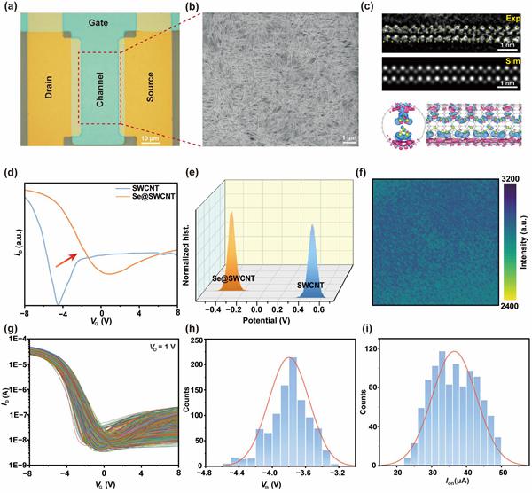 图2. Se@SWCNTs 光电晶体管的大面积均匀性表征