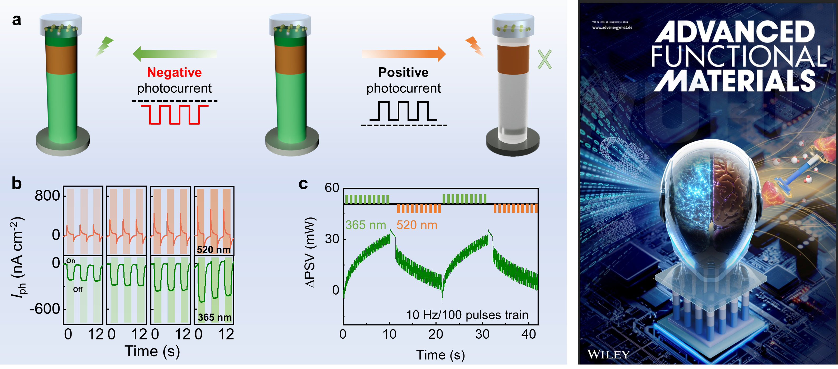 研究结果以Realizing bidirectional photocurrent in monolithic dual-mode device for neuromorphic vision and logically-encrypted transmission为题发表在Advanced Functional Materials,并被遴选为期刊正封面,苏州纳米所蒋敏博士、赵宇坤副研究员为共同第一作者,苏州纳米所赵宇坤副研究员、中国科大孙海定教授和苏州纳米所陆书龙研究员为共同通讯作者。