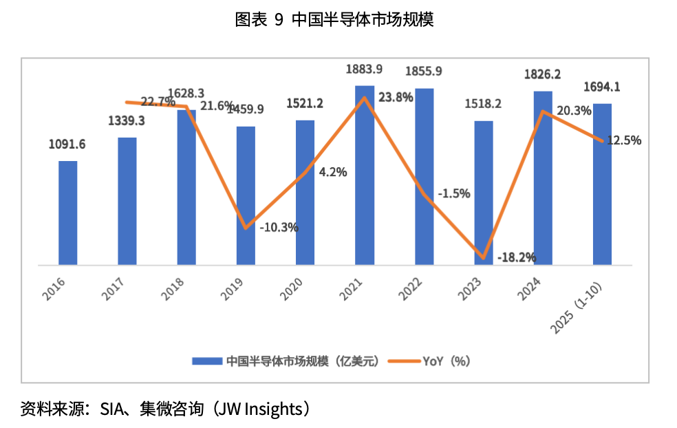 随着高端逻辑芯片国产替代进程持续推进以及存储芯片产能逐步释放,国内半导体市场规模保持稳步增长态势。同时,中国仍是全球最大的半导体需求市场之一,在人工智能、数据中心、智能终端及汽车电子等下游应用带动下,逻辑芯片与存储芯片需求结构持续升级。