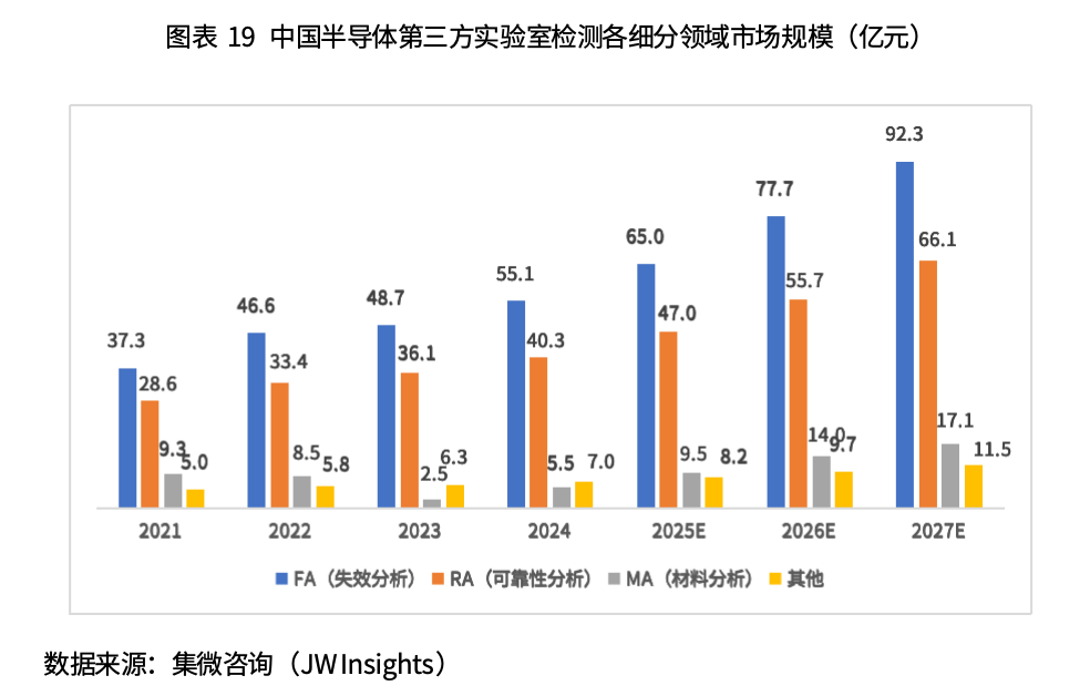 3、中国半导体第三方实验室检测各细分领域市场规模