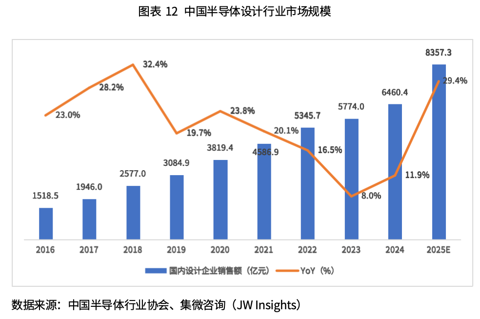 在人工智能、电动汽车等新一轮技术与应用浪潮持续拉动下,叠加国产化趋势长期推进,国内芯片设计行业具备长期增长动能。