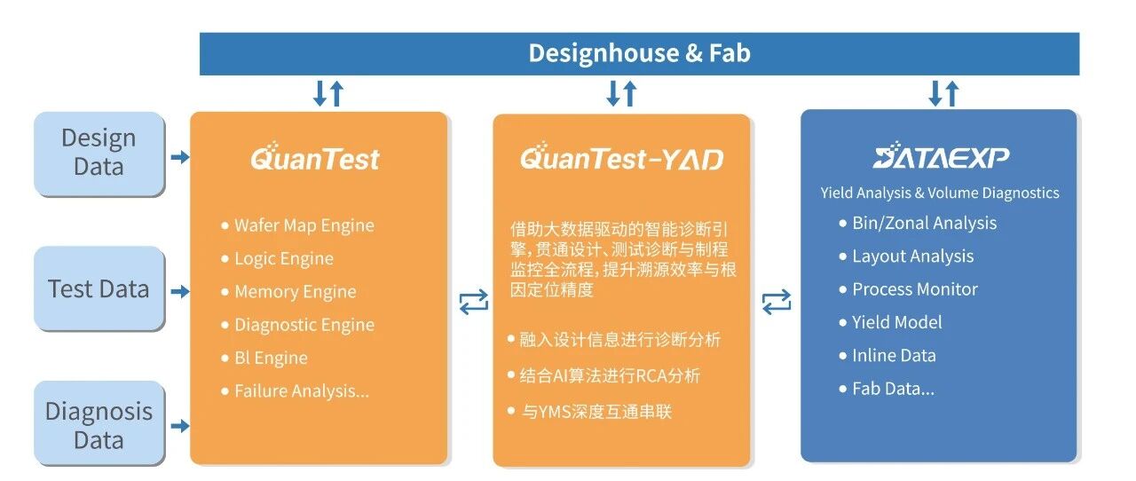 与此同时,QuanTest-YAD也在多家顶级芯片设计公司(Fabless)实现落地。YAD通过智能化诊断分析,连接芯片设计意图与量产制造结果,尤其适用于工艺严苛,设计复杂的大型芯片公司与追求极致性能与可靠性的AI芯片公司,为破解系统性良率瓶颈提供了关键工具。
