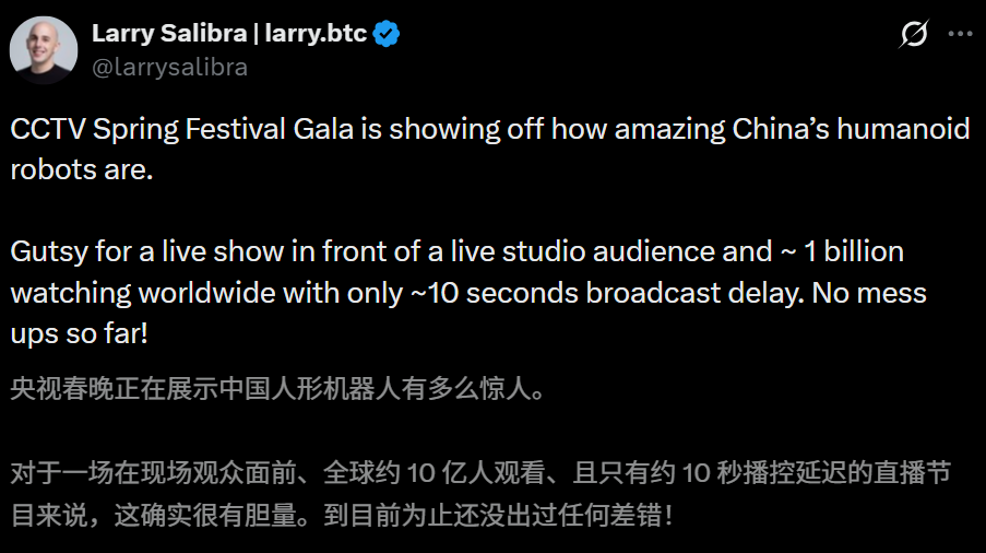 2026年的春晚,在向全世界宣告:中国不只是在参与这场竞赛,而是在加速领跑。