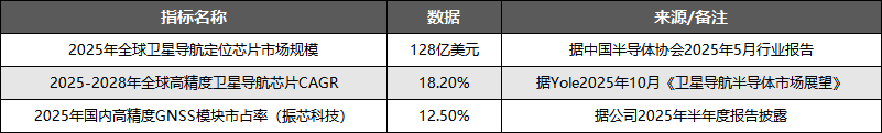 全球卫星导航定位芯片赛道已进入高速增长期,高精度细分领域增速显著高于行业平均,振芯科技在国内市场占据重要地位,核心赛道数据如下: