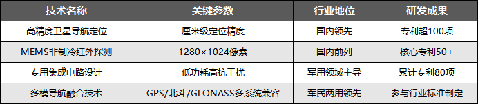 公司在高精度卫星导航、MEMS非制冷红外探测等核心领域形成深厚技术壁垒,关键技术参数优于行业平均,专利布局完善,成为核心竞争力的核心支撑,具体如下: