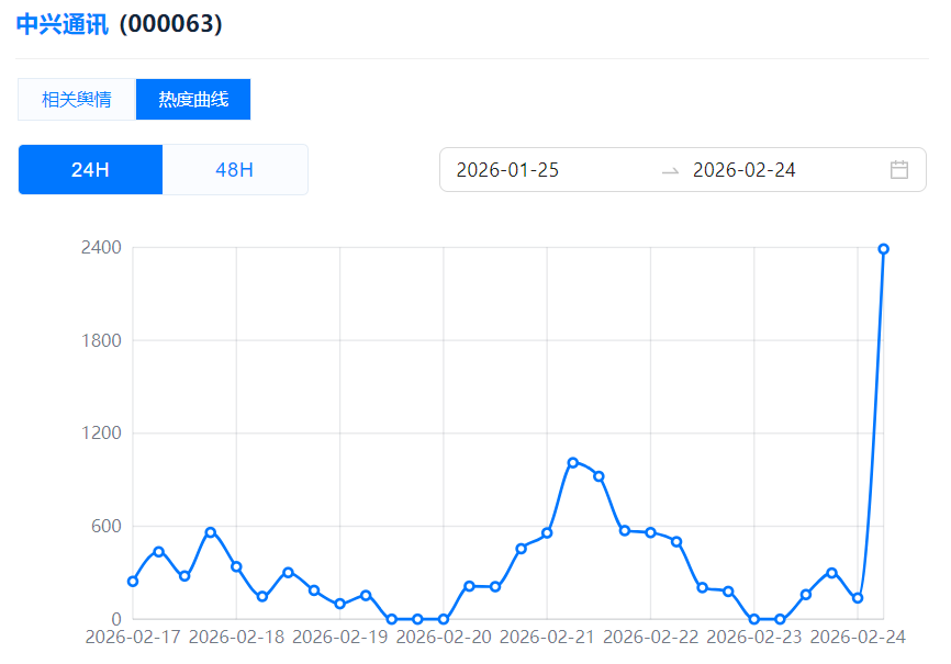【上市企业热度观测日志】2月24日:马年开门红,中芯国际、华工科技、中兴通讯热度领跑