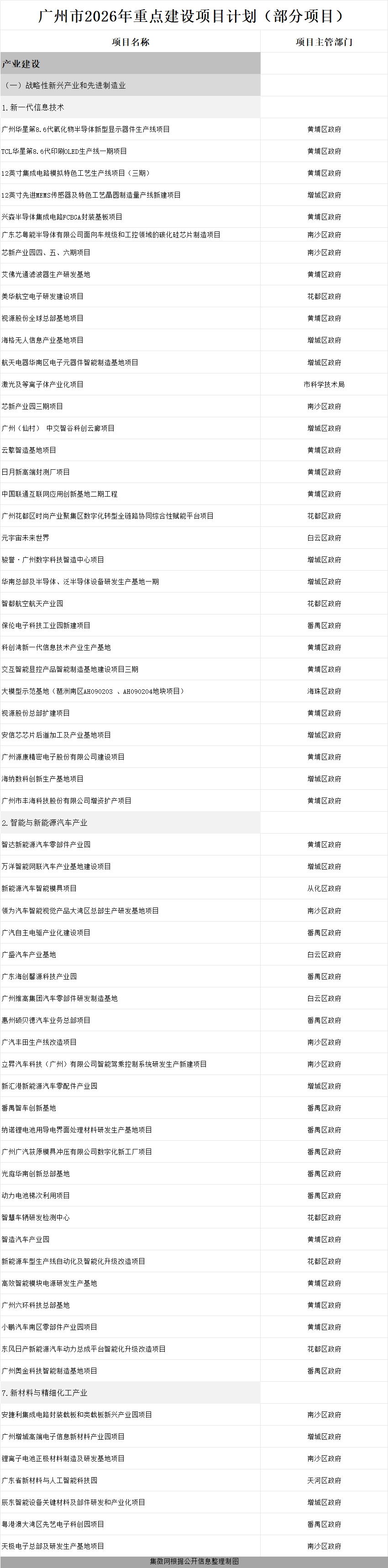 广州市2026年重点建设项目计划中“产业建设”包括:广州华星第8.6代氧化物半导体新型显示器件生产线项目、TCL华星第8.6代印刷OLED生产线一期项目、12英寸集成电路模拟特色工艺生产线项目(三期)、12英寸先进MEMS传感器及特色工艺晶圆制造量产线新建项目、兴森半导体集成电路FCBGA封装基板项目、广东芯粤能半导体有限公司面向车规级和工控领域的碳化硅芯片制造项目、艾佛光通滤波器生产研发基地、安捷利集成电路封装载板和类载板新兴产业园项目等。