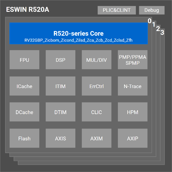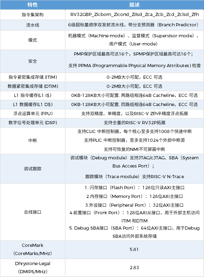 在性能方面,R520A单核CoreMark性能高达5.8 CoreMarks/MHz,DMIPS在legal和best模式下分别达到2.8、7.7DMIPS/MHz,凭借精简高效的架构设计,在实时性、低延迟及安全隔离性上表现卓越。