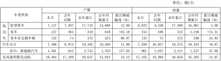 整体看,东风股份2月销售汽车7209台,不及去年同期的10027台;今年累销18275台,同比微降0.87%。