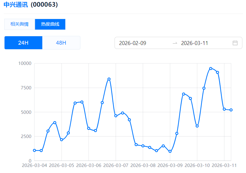 (中兴通讯热度曲线)