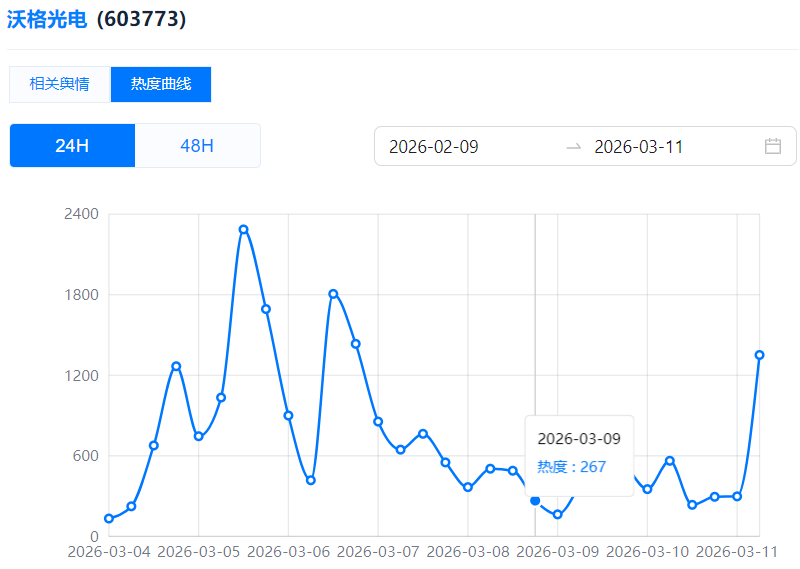 (沃格光电热度曲线)