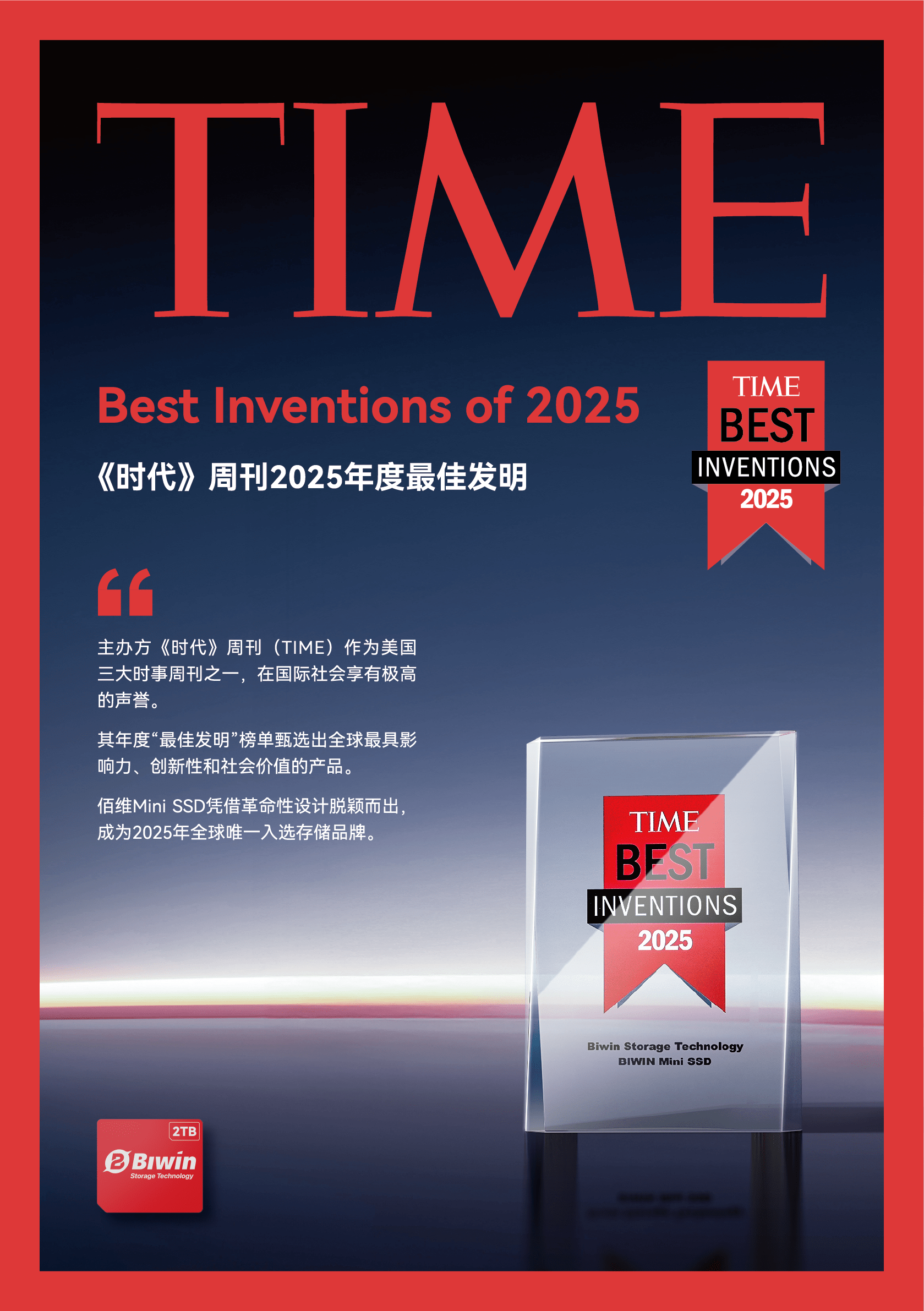 紧随《TIME》之后,Mini SSD在国际创新舞台上继续高歌猛进,接连获得多项国际权威大奖,每一项都代表着行业内的最高标准。