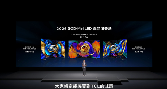3月17日, TCL SQD-Mini LED 电视春季新品发布会盛大启幕。TCL重磅推出搭载划时代SQD-Mini LED技术的Q9M Pro、T7M Ultra、T7M Pro 三大爆款产品,通过将机皇级 SQD-Mini LED 技术快速下放,实现从旗舰到主流系列的SQD-Mini LED 技术全价位覆盖,真正践行“当技术站上巅峰 普惠才有力量” 的技术理念。这也正式宣告,这一曾被奉为 “画质天花板” 的技术,开启了全民普及的新纪元 ——2026 年正式进入SQD-Mini LED 电视普及元年。