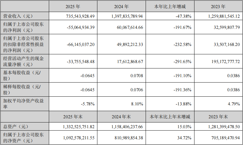 索菱股份3月23日发布2025年年度报告。报告显示,公司2025年实现营业收入7.36亿元,同比下降47.38%;归属于上市公司股东的净利润为-5,506.49万元,较上年同期由盈转亏;扣非净利润为-6614.5万元,同比由盈转亏。
