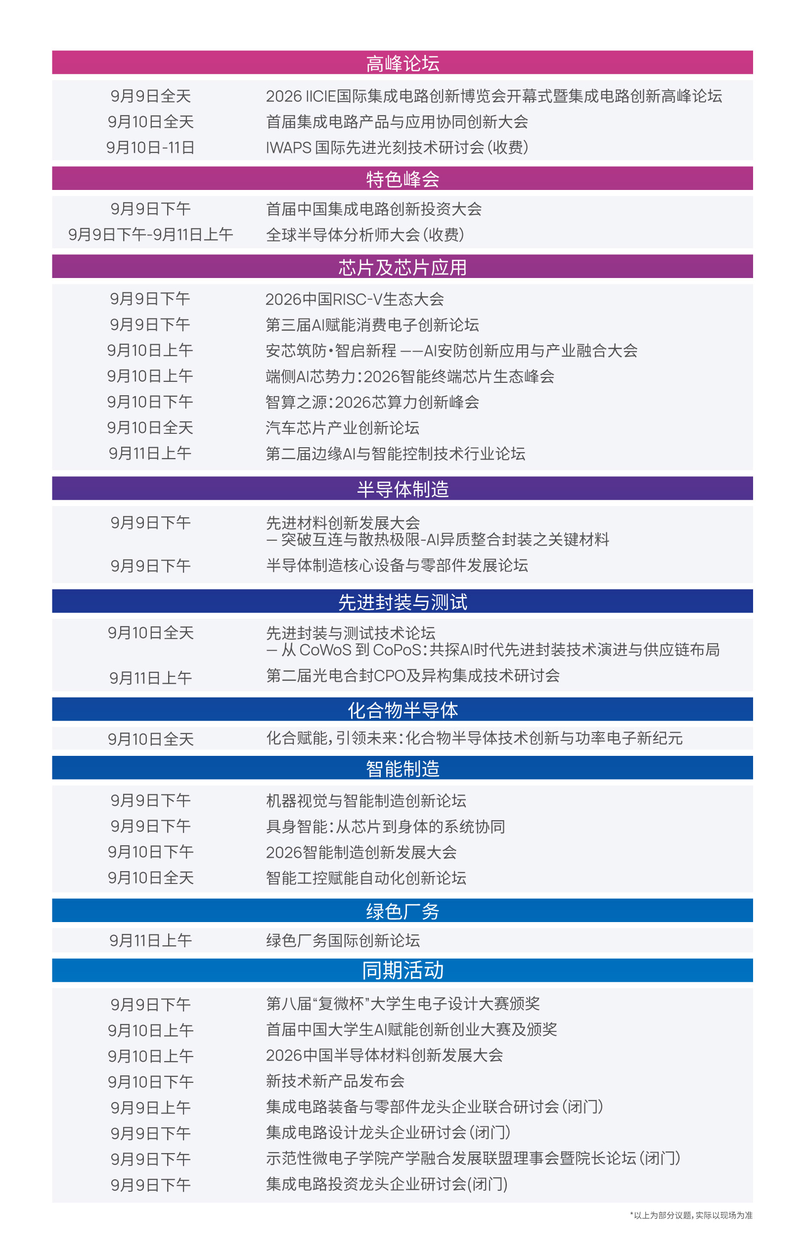 展会期间,将汇聚全球集成电路领域极具影响力的专家学者与产业链龙头企业,聚焦半导体制造、装备材料、先进封装、CPO 光电合封、化合物半导体、机器视觉与智能制造、绿色厂务等关键领域,破解核心技术瓶颈;同时围绕 AI 芯片、RISCV、智能汽车、消费电子、安防、存储芯片等应用场景,搭建芯片技术与终端需求的高效对接平台,推动产学研用深度协同。