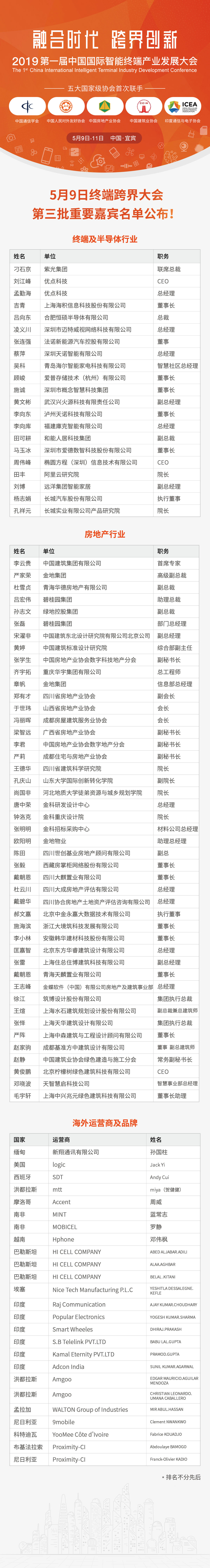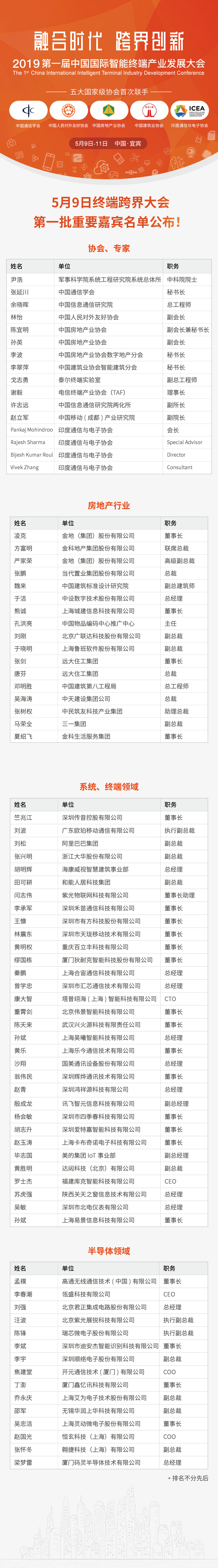 国内嘉宾484人:其中国家部委和省领导7人,院士1人,行业学会、协会、研究院共61人,国内市外企业357人。其中智能终端及半导体行业企业112人(董事长21人,总经理25人),房地产行业企业245人(董事长18人,总经理30人),宜宾本地企业62人(董事长16人,总经理25人),媒体约55家。