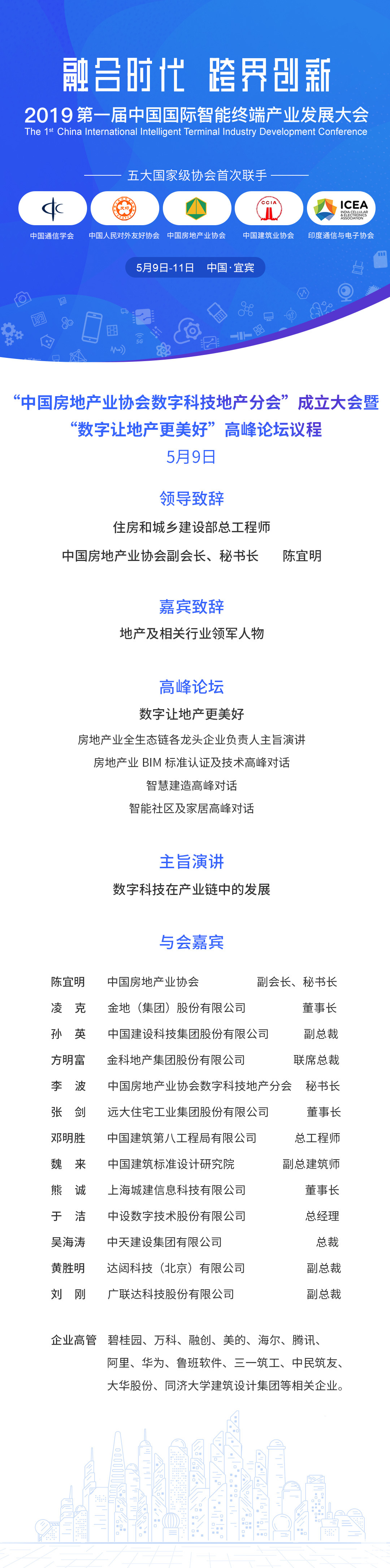 为此,中国通信学会、中国人民对外友好协会、中 国房地产业协会、中国建筑业协会、印度通信与电子协会联手,在5月9号-11号在宜宾举办第一届中国国际智能终端产业发展大会,大会以“融合时代、跨界创新”为主题,着力打造智能终端与其他产业融合的高端跨界、跨区域的国际化交流平台。