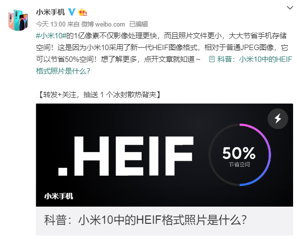 官方科普:小米10中的HEIF格式照片是什么?