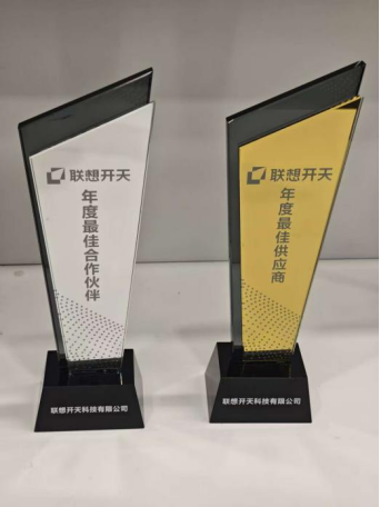沐创与联想开天建立长期战略合作伙伴关系以来,以实打实的交付成果,筑牢合作根基。2025年,沐创凭借过硬的产品质量、高效的交付速度以及完备的技术支持服务荣膺联想开天“年度最佳合作伙伴”和“年度最佳供应商”。