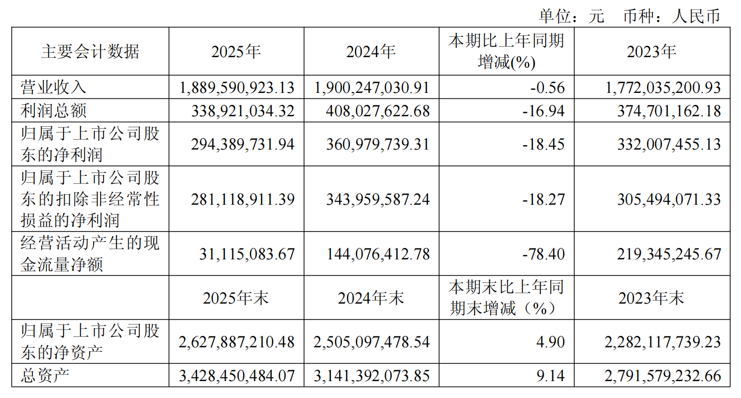 3月31日,云路股份发布2025年年度报告,2025年公司全年实现营业收入18.9亿元,同比微降0.56%;归属于上市公司股东的净利润2.94亿元,同比下降18.45%,基本每股收益2.45元。公司2025年累计拟分红1.68亿元,占全年净利润比例达57.07%。