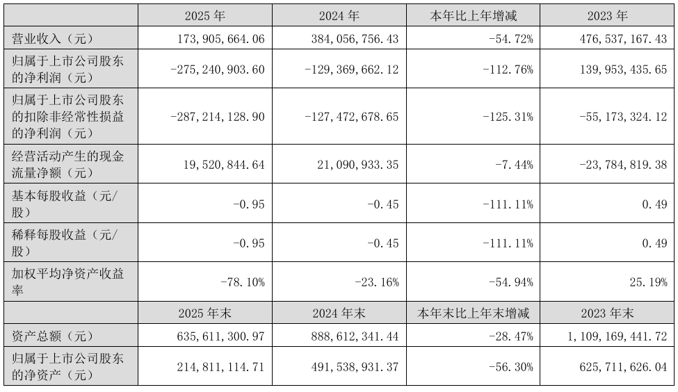 4月3日,大连智云自动化装备股份有限公司发布2025年年度报告。报告显示,公司实现营业收入1.74亿元,同比下降54.72%;归属于上市公司股东的净利润为-2.75亿元,亏损同比扩大112.76%;扣非后净利润为-2.87亿元,同比下降125.31%。