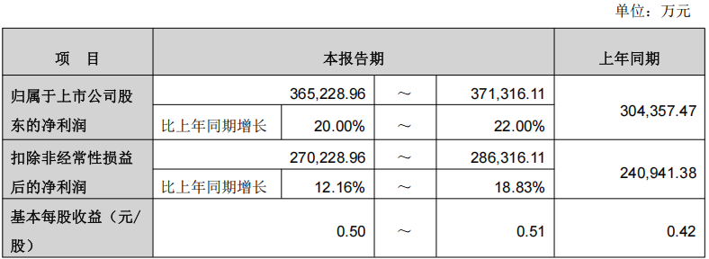 同日,公司发布2026年第一季度业绩预告。公司预计2026年第一季度归属于上市公司股东的净利润为36.52亿元至37.13亿元,比上年同期增长20%至22%;扣除非经常性损益后的净利润为27.02亿元至28.63亿元,同比增长12.16%至18.83%;基本每股收益为0.50元至0.51元。